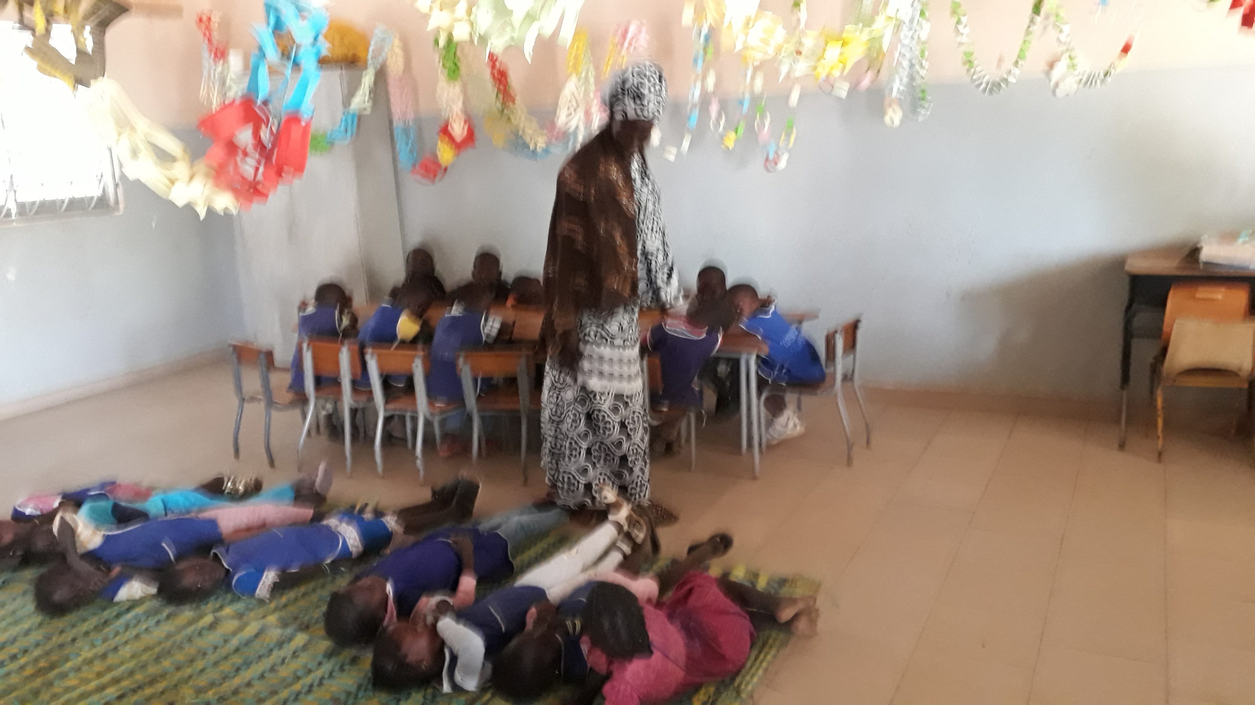Aufgabe der Erzieherinnen in den Kindergärten ist es, den Kindern früh die Amtssprache Französisch zu lehren. Mit Bauklötzen werden die Buchstaben nachgebildet, später an die Tafel geschrieben. Die Kinder lernen französische Lieder und Tänze. In den Pausen dürfen die Kleinen draußen spielen. Danach ruhen sich die Kinder auf den Matten oder den Tischen aus und die Lehrerin singt ein sanftes Lied. Diese Beobachtung hat uns sehr bereichert, da wir so etwas hier noch nie zuvor erlebt hatten.